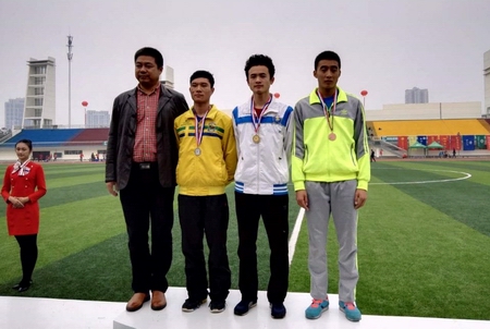 机械工程系机制S14-1班彭雄(右二)夺得男子400米金牌