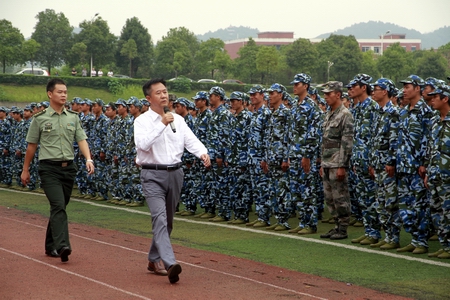 学院党委书记熊琦检阅军训方阵队