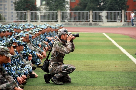 本网讯 9月22日上午,随着新生军训检阅及开学典礼结束,2015级新生们自发在图书馆门前集合,用属于他们的方式表达对教官的感激,现场弥漫着离别之际不舍的气息。