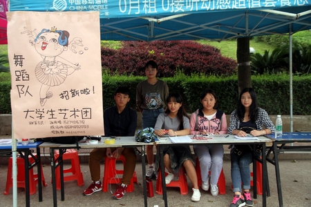 据悉,本届招新活动将持续到24日,共有院学生会和团委各9个部门、社联46个协会开展招新。