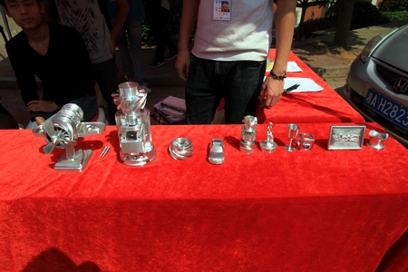 在招新的现场,为了能够吸收更多新学员,各个部门、社团都拉起了横幅、摆放展板、发放传单等等。新媒体中心的肖陆辉学长热情地给大一学弟学妹们介绍部门基本情况,还耐心为学弟学妹解惑答疑,帮助他们更好的了解部门;电子协会拿出会员自制的“爱心流水灯”等小成果吸引新生关注;营销协会军训期间就给新生送水温暖,提前宣传;机械创新协会的产品机械构建装置吸引了很多本专业学生报名。