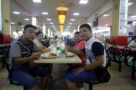 电气自动化新生黄天佑、张彭祥和家长第一次在食堂就餐,在不知道怎么使用打饭机的时候,食堂工作人员主动、热情地帮助他们。采访中,他们表示食堂饭菜很可口,对学校提供的迎新服务和学习、生活环境都非常满意。