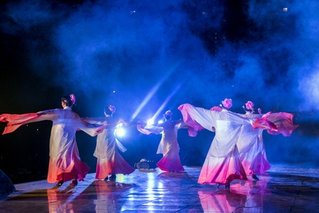 身着自己裁剪、扎染、制作的汉服,天心阁文学社同学带来《霓裳羽衣》