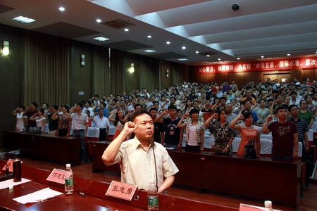 随后,由周立华领誓,与会新党员进行了宣誓,老党员重温了入党誓词。