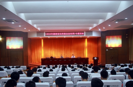 本网讯 为落实湘宣发《关于做好2015年湖南省社会科普及宣传工作的通知》精神,配合上级有关部门开展《2015年湖南省社科学普及宣传周》活动,6月9日下午,我院在图书馆多功能厅报告厅共同举办《全面深化改革——中国改革进行时》专题社科普及讲座,由湖南省中国特色社会主义理论体系研究中心南华大学基地首席专家、南华大学马克思主义学院教授、湖南省理论学习服务体系专家、湖南省高校形势与政策研究会会长李晓衡主讲。本次讲座由我院科技处、宣传部、学生处及院团委共同承办。