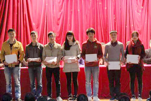 大会对2014年度的系部学管工作考核优秀、国家奖助学金、学院奖学金、优秀班集体、三好学生、优秀学生干部、文明寝室创建活动优秀寝室、大学生心理健康教育先进集体和先进个人、2014年元旦文艺汇演优秀节目、学院篮球文化节获奖单位和个人、广场文化节获奖单位和个人、优秀运动员和体育艺术工作先进个人等进行了表彰。在座领导为获奖单位和个人颁奖。