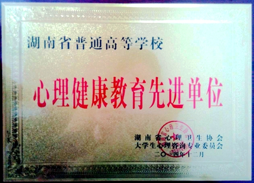 会议对本年度全省高校在心理健康教育工作领域做出积极贡献的先进集体和先进个人颁发表彰决定。我院喜获“2014年度湖南省普通高等学校心理健康教育先进单位奖”;吴倩老师荣获“2014年度湖南省高校心理健康教育先进个人”;杨娟老师荣获“2014年度湖南省高校优秀心理咨询师”;机械工程系心理咨询部荣获“2014年度湖南省高校优秀心理类学生组织”。