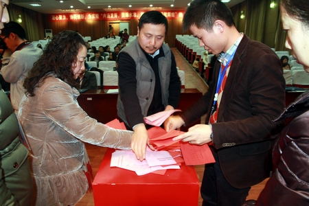 14:30,大会进行“两委”委员的投票选举。院长刘建湘主持。