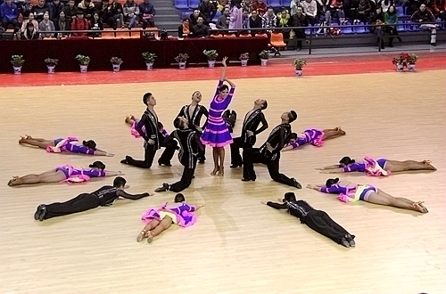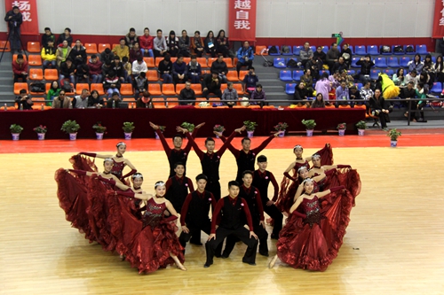 本网讯 11月25日上午,体育舞蹈比赛集体舞决赛拉开序幕。我院参赛代表队16名队员精诚合作,技压群雄,以绝对优势夺得高职专科普通组集体舞金牌。本届大运会体育舞蹈比赛设三个项目,我院收获两金一银。