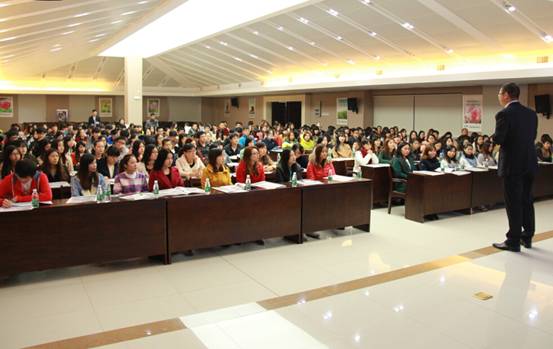 晚安工业园优美的环境、洁净的车间,井然的工作秩序、严格的管理制度给老师和同学们留下了深刻印象。公司董事长曹泽云为师生们作了一堂题为“我的创业之路,从三千到十亿到百年梦想”专题讲座。曹泽云从年轻时的艰辛谈到现在取得的成就,从个人的奋斗谈到晚安的百年梦想,让在座师生经历了一次非常生动的创业教育和理想道德教育。晚安家居学院行政院长辛栎为同学们做了主题宣讲,对学生未来职业生涯规划等提供了帮助,宣传了“晚安班”的办学模式和机制,宣讲了“春耕计划”的相关内容。