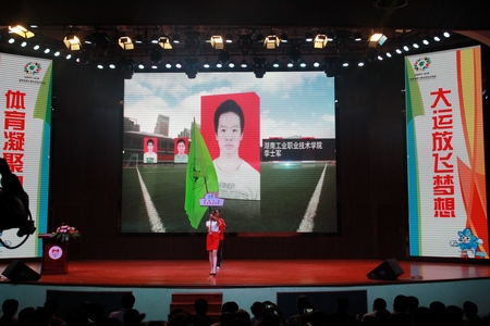 10月16日晚,湖南省第十届大学生运动会田径比赛在长沙民政职业技术学院影剧院开幕。开幕式由湖南省第十届大学生运动会组织委员会副秘书长、湖南省学生体育协会秘书长潘洪飚主持。