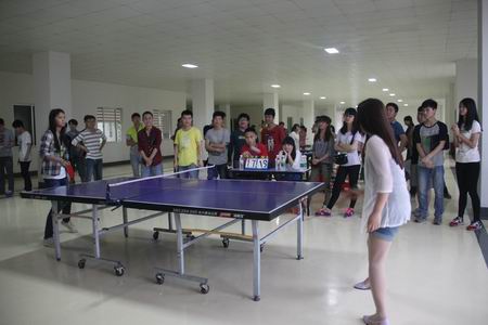 本网讯 5月23日,我院大学生事务中心乒乓球训练场正在如火如荼的举行首届学生乒乓球团体赛总决赛。此次乒乓球赛由体育艺术部主办,院乒乓球协会承办,比赛从策划到组织实施,实现了全程由学生做主、学生当明星,充分发挥了学生的主观能动性。