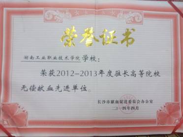 本网讯 4月18日,湖南省血液中心组织举办的驻长高校无偿献血表彰大会召开。会议表彰了2012-2013年度在无偿献血工作中作出突出贡献的单位及个人。我院荣获无偿献血先进单位奖,学生处副处长梁艳获得无偿献血工作优秀组织者奖。