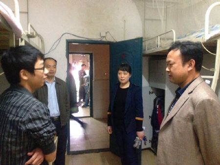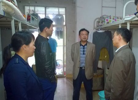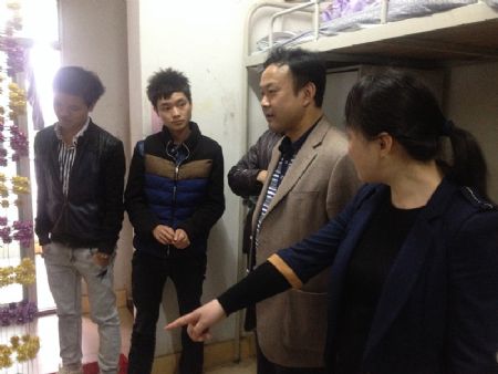 周立华(左二)带队走访2栋男生寝室