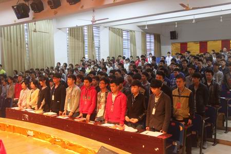 典礼由本次培训班班主任陈英芳担任主持,党校50、51期入党积极分子320余人参加典礼。开班典礼以全体党校学员合唱国歌的大合奏形式拉开帷幕。