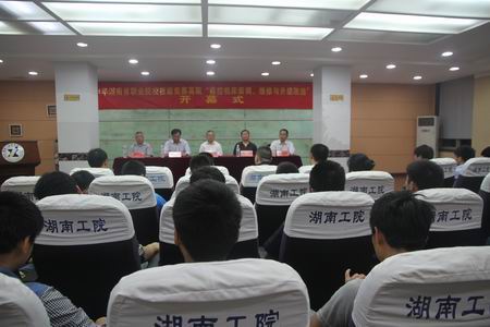 本网讯 5月16日晚,2014年湖南高职院校“数控机床装调、维修与升级改造”项目技能竞赛开幕式在我院办公楼第一会议室隆重举行,省机械行业管理办公室副主任罗志平、省教育科学研究院职成所所长孙添、我院副院长陈超、省机械行业管理办公室处长殷建国、本次赛项裁判长周继伟,省派联络员、省教育科学研究院苏云等出席开幕式,我院教务处处长李力夫主持开幕式。