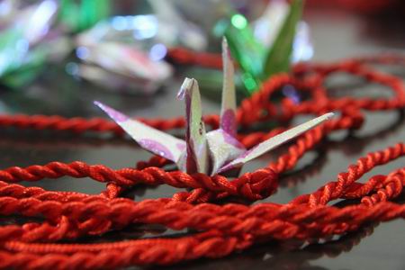 手系红绳,捧纸鹤,祝我们的考试马到成功