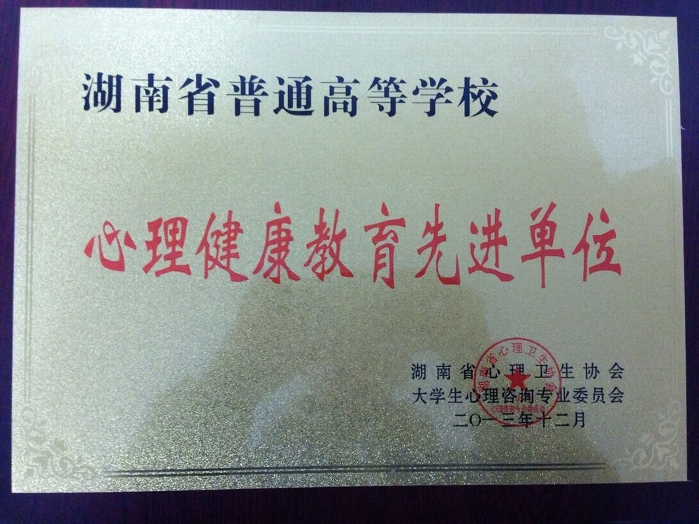 会议对本年度全省高校在心理健康教育工作领域做出积极贡献的先进集体和先进个人颁发表彰决定。我院喜获“2013年度湖南省高校心理健康教育先进单位奖”;杨雨晴老师荣获“2013年度湖南省高校心理健康教育先进个人”;廖娓老师荣获“2013年度湖南省高校优秀心理咨询师”;学院心理协会荣获“2013年度湖南省高校优秀心理类学生组织”。
