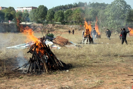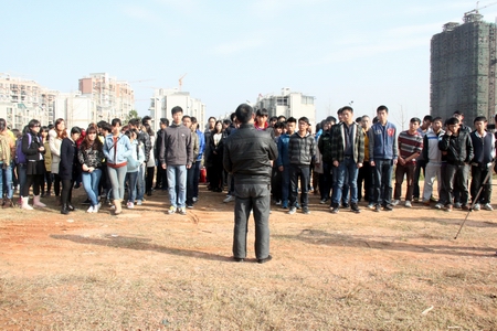 消防灭火训练现场,训练总教官盛正军老师为参加训练人员进行消防知识讲解,详细讲述了灭火器的种类、灭火时要注意的安全细节、如何正确规范使用灭火器、以及人员紧急疏散注意事项、宿舍怎样预防火灾等校园消防安全常识。盛老师一边讲解一边在点燃的干木堆上为大家示范如何操作灭火器。现场师生人手一个灭火器,根据盛老师所讲的灭火要点进行操作,不到几分钟,熊熊烈火基本被扑灭。