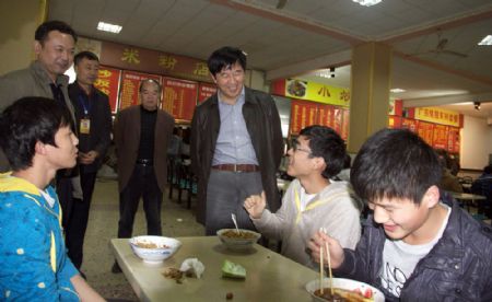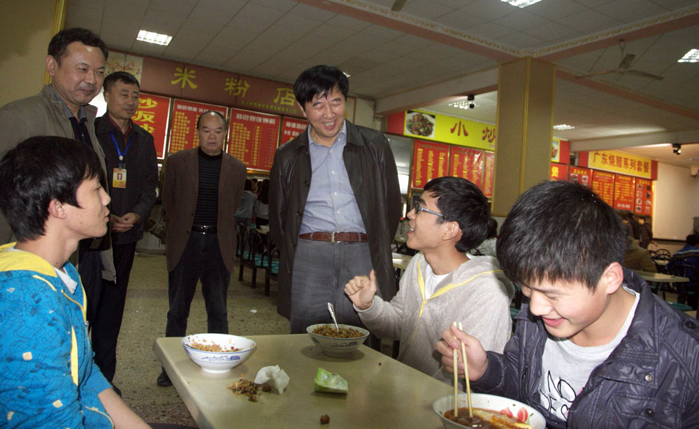 在学生二食堂,熊琦查看了操作间、洗消间、售卖间,听取了食堂相关管理人员对食品卫生安全措施等方面的介绍,并反复强调,一定要严格食品安全的质量控制,让同学们吃上放心菜。随后,熊琦来到一食堂,到窗口排队买来饭菜,和大家一起用餐,亲切地与就餐学生交谈,询问学生对食堂饭菜质量、价格以及服务态度等方面的看法。
