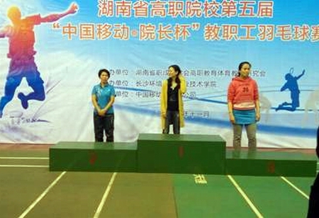 湖南省高职院校第五届“院长杯”教职工羽毛球赛经过三天的激烈角逐,于11月17日在长沙环境保护职业技术学院体育馆圆满落下帷幕。我院以学院羽毛球协会成员为主体的教职工代表在学院工会主席张志勇教授的带领下、在体育部长周文的指导下,首次参加了“院长杯”羽毛球赛,取得了良好战绩。其中后勤处任辉老师获女子单打亚军,体育艺术部李中武老师、商贸旅游系龙凌老师分别获得男子单打第四名和第五名,商贸旅游系刘昕渝老师获女子单打第七名,学院调研员刘琼老师与任辉获女子双打第七名。