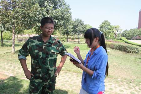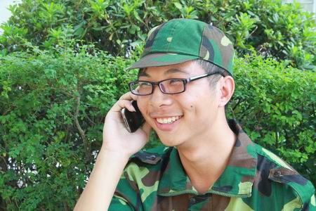 1营4连倪康和记者聊起了打电话的内容:“由于爸妈不在同一个地方,我也不在妈妈身边,希望爸爸能够陪伴妈妈过中秋节。”谈到军训中的苦和乐,倪康憨厚地笑了:“当有的同学动作总是做不到位时,教官也会很生气,总的来说,军训我们都很开心。我会在接下来的训练中努力做好自己,为集体争光。”