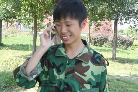 5营38连的伍广燕来自湖南益阳,这个性格较内向的女孩打往家中的两通电话都没有人应答,虽然失望也不愿放弃。她给妈妈发了一个短信:“感谢爸妈一直支持我读书,祝爸妈节日快乐,在这个团圆的节日里,我不能陪在你们身边,希望你们工作不要太劳累,注意身体。我在学校很好,不要为我担心。”