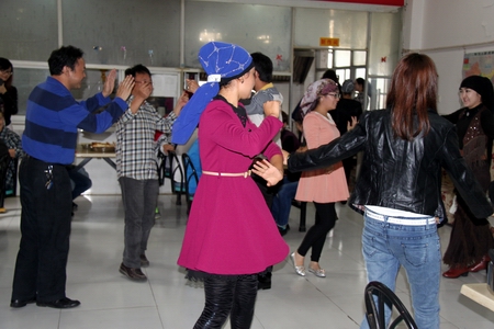 穆斯林同学带动汉族师生一起跳起了欢快、热情的民族舞蹈