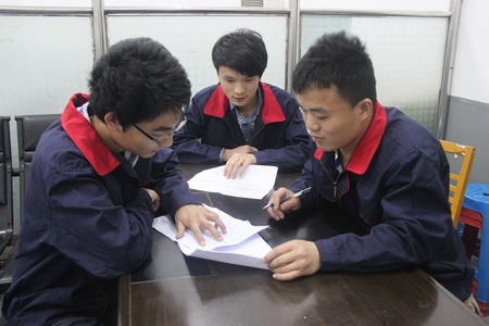 当采访小组走进数控中心时,几名男生正利用休息时间讨论赛前准备事宜,一张桌子,几把椅,很简单的摆设。问及比赛准备情况时,机械工程系大二学生徐永波腼腆一笑:“我们为这次比赛准备了两个多月,每天培训10多个小时,有时在实训楼一待就是一天,只想自己能多学点东西,享受其中的过程。也希望能在竞赛中发挥自己的真实水平,取得好成绩。”