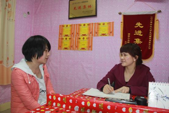 晚上8点50分,心理咨询室来了一位女学生。贺梅春耐心听其诉说。