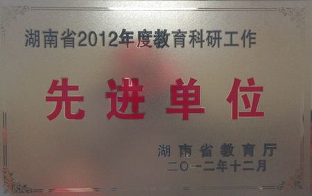 我院2008年被确定为湖南省教育科学研究基地,今年以优异的成绩通过了省教育科学院组织的评估,再次被确定为湖南省教育科学研究基地,同时评为2012年度湖南省教育科研先进单位。