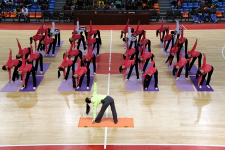 活动中,在三位体育老师的带领下,来自三所高校的同学们为在场所有师生作了篮球、瑜伽及花环啦啦操的现场教学示范。我院体育艺术部龙文老师带领瑜伽班学生做了以“如何提高协调能力、合作精神和耐力”为主题的瑜伽课程示范,让学生体会到了运动的快乐,同时也培养了其自觉性,受到了全国高等学校体育教学指导委员会委员、专家组成员李泽群教授的高度评价,他点评到:本堂瑜伽课程的展示从教学设计和组织等方面都非常的合理,高强度的提升了学生的求知欲望。