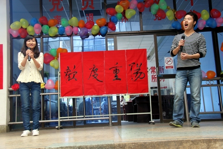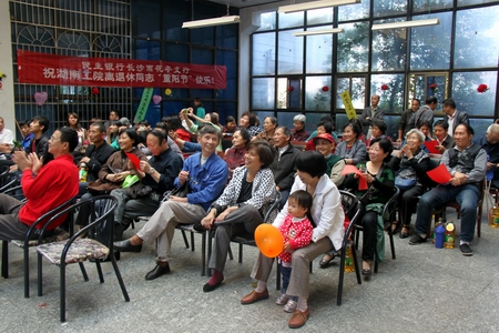 9月23日,离退休教职工与经济管理系学生志愿者欢聚一堂,在我院老校区活动中心举行“欢度重阳”文艺演出活动。
