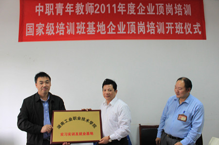董建国代表学院向湘电公司授予“yabocom(中国)官方网站实习实训及就业基地”牌匾
