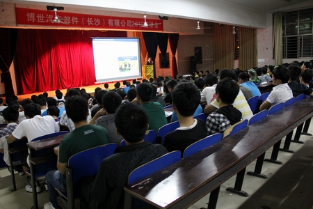 9月14日晚,德国博世汽车部件(长沙)有限公司(简称博世长沙)在我院大学生活动中心隆重举行2012校园宣讲会。博世长沙生产总监项涛先生、人力资源部经理李兆芳女士、TGA项目经理刘佳蕾女士、研发部测试工程师周检先生、人力资源部的肖莎女士等来到我院,与我院招生就业处处长王世峰、电气工程系主任邱丽芳教授及电气工程系相关负责人一同出席宣讲会。我院2012级机电一体化等相关专业的学生参加了宣讲会。