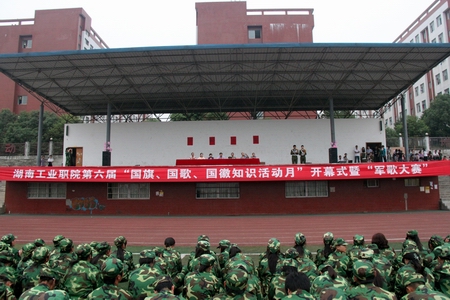 活动在激情高昂的国歌声中拉开了帷幕,黄敏做活动介绍。苗治田为第六届“国旗、国歌、国徽知识活动月”开幕式致辞,并宣布我院第六届“国旗、国歌、国徽知识活动月”正式开幕。他说,国旗、国歌、国徽是一个国家和民族的重要象征和标志,能够唤起人民的爱国主义热情和对祖国的责任感与荣誉感。过去十来天的时间里,在国防科技大学教官们耐心指导和严格要求下,同学们始终以饱满的热情接受严峻的考验,在军训中不畏艰难、不怕苦,以不服输的精神咬紧牙关,始终站立如松、行走如风、吼声如雷,充分发扬了“追求卓越、超越自我、敢为人先”的工院精神,体现了工院学子的坚强意志。他强调,作为祖国的未来和革命事业的接班人,同学们应牢记使命,为了中华民族的伟大复兴而努力奋斗。