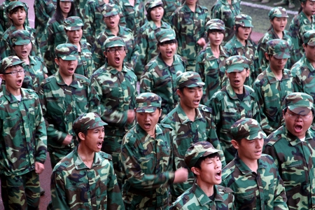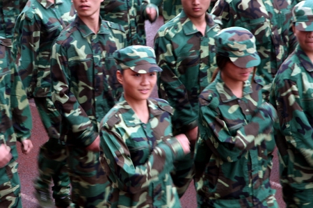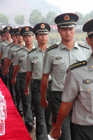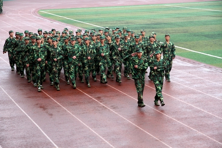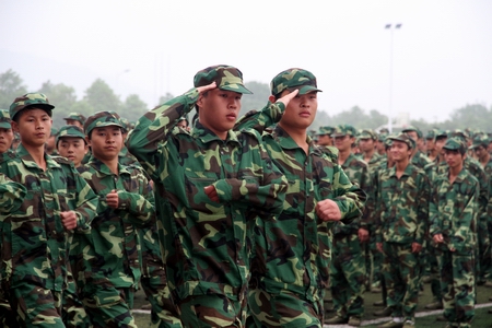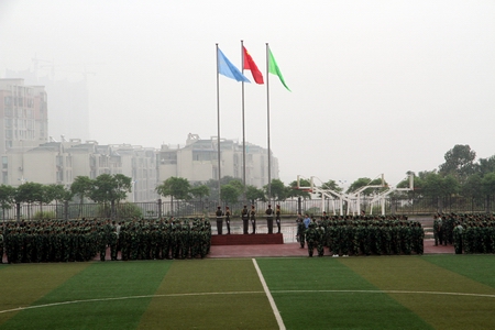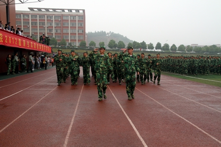 上午九时,庄严的升旗仪式后,学院党委书记龙承海在阅兵指挥员的陪同下逐一检阅军训方阵队。新生们一声声饱满的“首长好”、“为人民服务”响彻学院上空。随后,在雄壮的分列式进行曲中,各连方阵着装整齐、精神抖擞、英姿飒爽,以嘹亮的口号、铿锵有力的步伐走过主席台,接受全体领导、老师及部队指挥员检阅。他们动作规范,很好地展示了军训成果,赢得了阵阵掌声和喝彩。