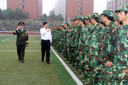 9月24日上午,我院2012级新生军检阅暨开学典礼在田径场隆重举行。院党委书记龙承海,副院长王柏林、纪委书记李玲、副院长刘继平、副院长钟晓林、党委副书记周立华、工会主席张志勇等院领导以及国防科技大学指挥军官基础教育学院四大队副大队长杨刚莅临会场。学院相关部门负责人、各系党总支书记及4650多名新生参加了典礼。典礼由周立华主持。