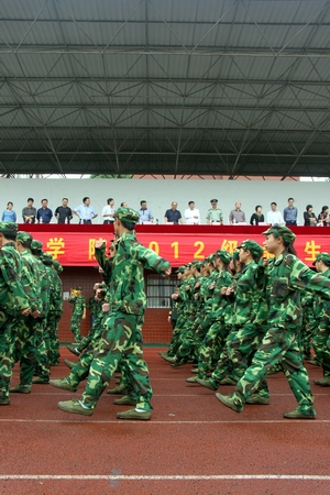 2012级新生军训检阅暨开学典礼在学院田径运动场举行