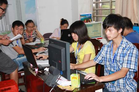 8月14日,全省高职2012年新生录取工作正式开始。我院经过周密部署,录取工作正在顺利进行中。笔者发现,录取现场保卫严格,联系电话此起彼伏,招录人员工作紧张有序。据悉,尽管今年我院的最低投档线比较高,文科415分,理科314分,但报考我院的新生质量依然很高。按照公开、公正、公平的录取原则,一大批优秀学子将进入我院圆梦自己的大学。