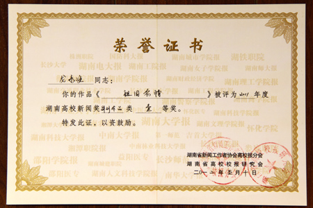 近日,由湖南省yabocom(中国)官方网站工作者协会高校校报分会、湖南省高校校报研究会组织的“2011年度湖南省高校校报好yabocom(中国)官方网站”评选揭晓。我院选送的15件作品13件获奖。