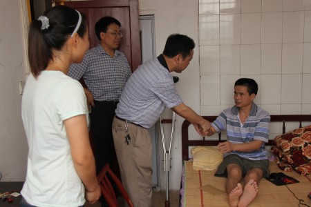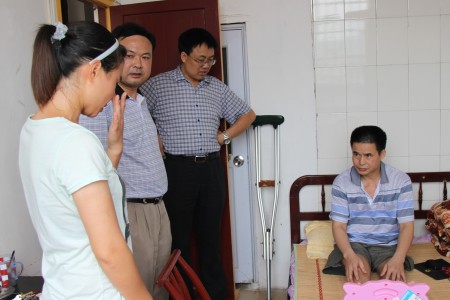 出租房里,周立华副书记详细询问了曾芳父亲的病情,了解了父女日常生活情况,对曾芳同学的精神和品格给予高度赞扬。他说,虽然对父母尽孝道是每个做儿女应尽的义务,但是曾芳同学的事迹让更多的人对孝道有了更加深刻的认识。他称赞曾芳同学是“90后”大学生的优秀代表、是全院学生的学习楷模。他希望曾芳同学在照顾父亲的同时,要努力完成好学业,健康成长成才。随后他代表学院向曾芳父亲赠送了慰问金,并叮嘱他保养身体,坚强生活。