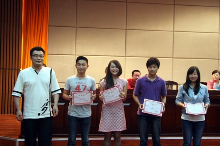 侯新华宣读我院大学生社团联合会和各协会负责人员名单及主要学生干部的任命决定,以及本次社团文化艺术节共九项表彰的人员名单。各系部团总支书记对获奖选手进行了颁奖。