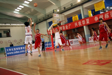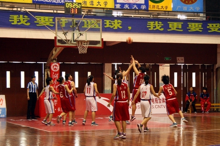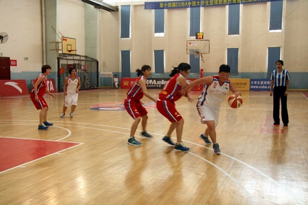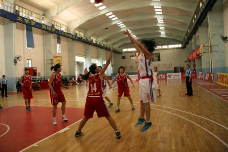 其中,我院与主场队伍湖南师范大学代表队展开的比赛最为精彩。在这场比赛中,我院一开始就派出了主力队员与之抗衡,并且取得了相当可观的佳绩。在首节中,我院积极进攻,率先控球。虽然首先进球的是湖南师范代表队,可我院立即迅速回防、反攻,一下连进两球,尤以13号队员李伟的一记三分投球最为精彩,更是鼓舞了我院女篮的斗志。于是第一小节我院以四分的优势小胜湖南师范代表队。在第二节中,我院女篮姑娘们继续秉承上一节的猛烈进攻,一抢、一跳、一投之间皆展现了我院的篮球水平。第二节落幕时我院又以28:27稍稍领先于湖南师范代表队。由于我院主力队员一直在奋战,难免有些体力不支,外加我院女篮还是一支年轻的队伍,经验稍显不足,在第三节和第四节上皆稍逊湖南师范一筹,最终不敌湖南师范代表队。
