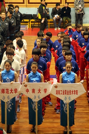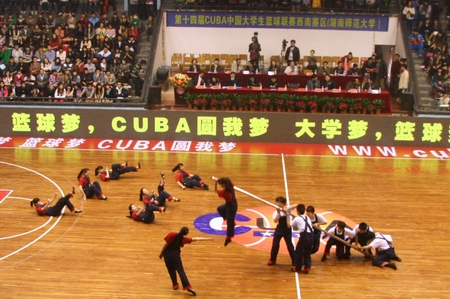 3月29日下午,第十四届CUBA联赛西南赛区分区赛开幕式在湖南师范大学体育馆举行,湖南省政协副主席、中国大学生篮球协会副主席刘晓,中国大学生篮球协会执行主席张宁飞先生,副主席兼秘书长陈南生先生,我院院长刘建湘等嘉宾出席了开幕式。