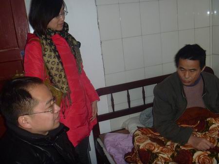 经济管理系党总支书记孟正文与系辅导员老师看望曾芳父女俩