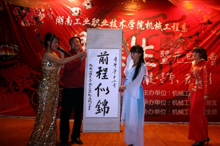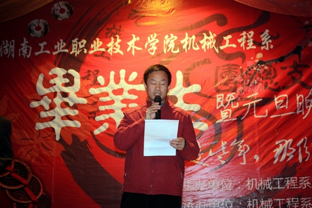 学院党校副校长、械工程系党总支书记陈方在晚会最后为毕业生送上了真挚的祝福,他祝愿所有的毕业生都能就好业,在今后的人生道路上不论成就大小,都要记得曾是湖南工业职院机械工程系的一员,并希望毕业生们能“常回家看看”。
