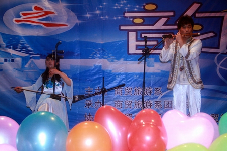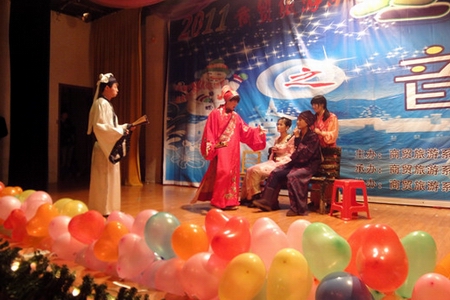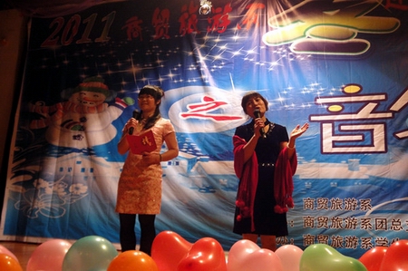 12月21日晚,我院大学生活动中心灯光璀璨,座无虚席,商贸旅游系“2011‘冬之韵’迎新送老晚会”如清雅馥郁的冬日寒梅般傲然盛放于此。晚会由商贸旅游系主办,商贸旅游系团总支承办,商贸旅游系学生会及学生党支部协办。商贸旅游系相关负责人及老师与同学们一起观看了晚会。