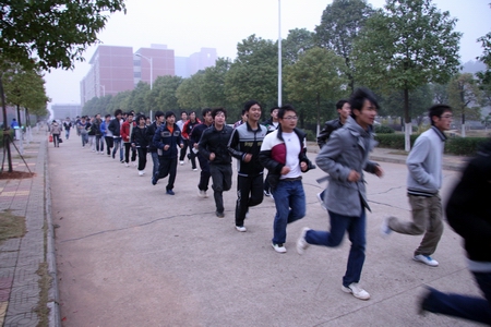 各系队伍整齐 犹如一抹朝阳 成为清晨校园内最亮丽的风景线