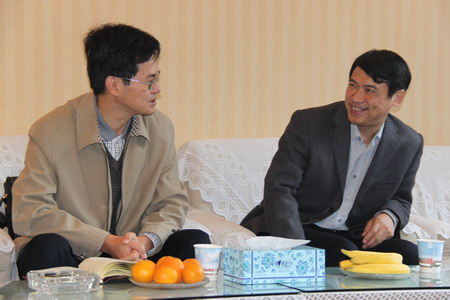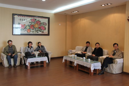 学院副院长董建国(右一)向客人介绍我院基本情况